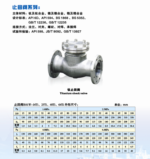 鈦閥門系列 - 鈦止回閥 H41W-16Ti H41W-25Ti H41W-40Ti H41W-64Ti